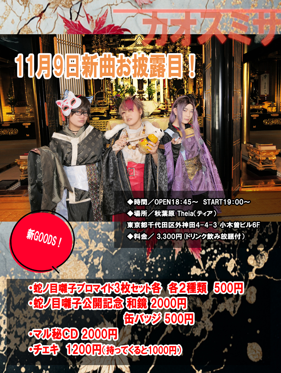 ◇出演:優弥・未来・比呂 ◆時間/OPEN18:45~ START19:00~ ・物販 20:00~20:45 ◆場所/秋葉原 Theia(ティア) 東京都千代田区外神田4-4-3 小木曽ビル6F ◆料金/ 3,300円(ドリンク飲み放題付) 🔻申し込みフォーム🔻